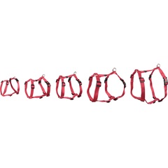 Material: nailon | Ajuste progresivo | Cada arnés tiene una hebilla de clic con cierre de seguridad, excepto XS | Con anilla para sujetar una correa | Las anillas metálicas tienen un recubrimiento de níquel brillante