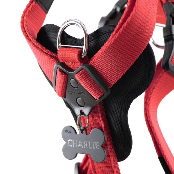 El arnés memopet® H cintas rojo es la combinación perfecta de confort y estilo. Ligero y muy suave, es increíblemente cómodo. Será tu compañero de aventuras ideal, gracias a sus características especiales: sistema Pelostop, bandas reflectantes, chip NFC para conectarse con la app dedicada con un solo toque, y un anillo frontal perfecto para el entrenamiento. Usable en todas las condiciones meteorológicas, ¡ya no tendrás excusas para quedarte en casa! La línea memopet incluye accesorios MyFamily ya icónicos, que conquistan sin cesar a los amantes de las mascotas por su versatilidad y la amplia gama de colores disponibles. Dedicado a quienes tienen culto a la comodidad, dondequiera que vayan.