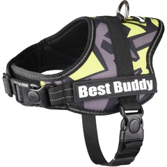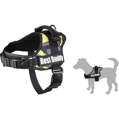 Material: nailon con relleno: esponja | De ajuste progresivo y con tiras reflectantes | XXXS - M: cierre de seguridad; XS - XL: correa ventral | La hebilla de clic y anilla tienen un acabado de metal gris oscuro brillante | Gran confort de uso gracias a su relleno suave y su malla transpirable | Con anilla para sujetar una correa | Puede acoplar el asa a cualquier arnés, excepto los de la S