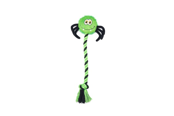 Con el juguete para perros de Halloween, Araña con Cuerda de Beeztees, ¡le darás a tu perro una sorpresa divertida y divertida en Halloween! La araña de peluche tiene un espeluznante diseño verde con negro y una cuerda de juego. La cuerda de algodón proporciona aún más diversión y sus hilos también ayudan a limpiar los dientes mientras juega. Además, tu perro oirá un agradable chirrido con cada mordisco, lo que hace que el juego sea aún más divertido. El suave peluche hace que la araña sea muy agradable de sostener en la boca. En resumen, ¡el Beeztees Halloween Spin te proporcionará horas de diversión!