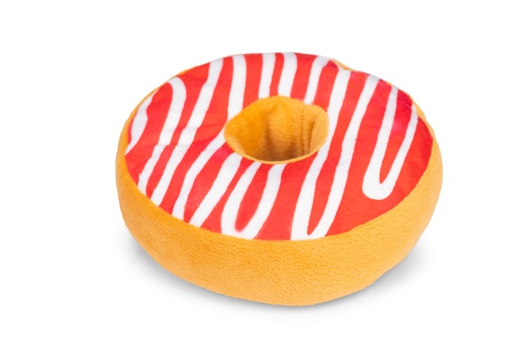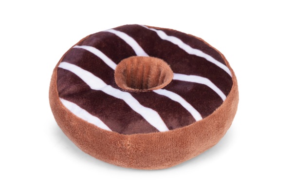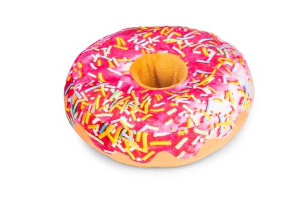 Fabricado en felpa suave |Juguete para perros con forma de alegre donut | Con papel de aluminio crujiente | Disponible en tres diseños diferentes| Medidas: 13,5 x 13,5 x 4 cm