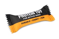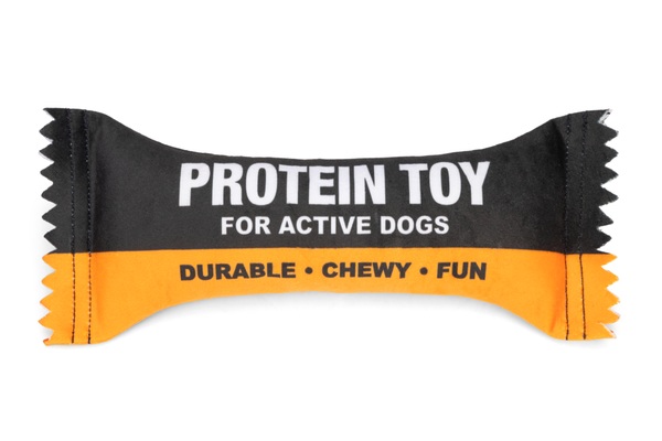 Fabricado en felpa suave |Juguete para perros con forma de barrita proteica |Con chirriador para mayor diversión |Tamaño cómodo para la boca de tu perro| Medidas: 24,5 x 10 x 4 cm
