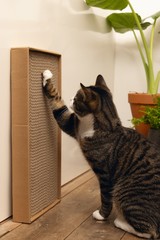 Satisface la necesidad natural de afilar las uñas de los gatos | Certificado FSC y DDS | Respetuoso con el medio ambiente | Fabricado con cartón DDS reciclable hecho con materias primas renovables | Puede utilizarse por ambas caras | 100% reciclable | Calidad: FSC y DDS | Medidas: 48,5cm x 24cm x 5cm