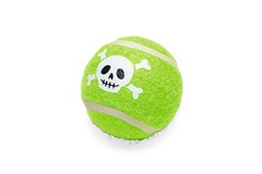 Bola espeluznante de Halloween de Beeztees - Juguete para perros - 4 piezas - Surtido Si a tu perro le encanta jugar con pelotas de tenis, estas Pelotas Escalofriantes de Halloween de Beeztees son muy recomendables. Estas pelotas para perros son juguetes que encajan a la perfección con la temática de Halloween. Lo que hace que jugar sea aún más divertido es que no hay una, sino cuatro pelotas dentro de la red. Esto le da a tu perro cuatro veces más diversión. Gracias a su diámetro de 6,3 centímetros, estas pelotas espeluznantes también son aptas para lanzar pelotas de tenis.