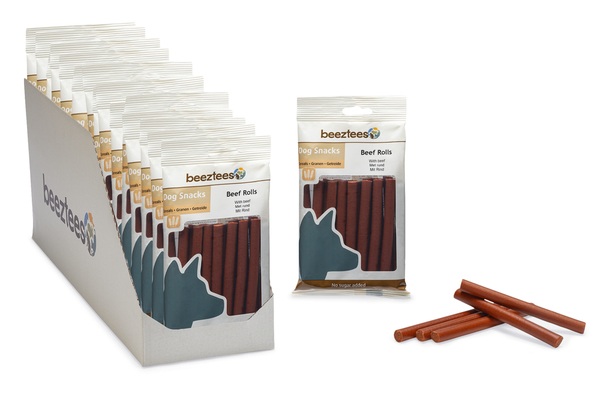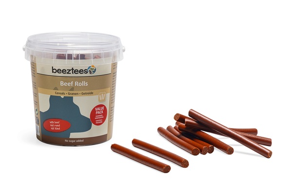 Los Beeztees Beef Rolls son un delicioso snack para perros. Son ideales como recompensa. Su textura suave facilita partirlos en trozos pequeños, lo que los hace agradables para perros con mordida débil o dientes sensibles. Están elaborados con cereales con un delicioso sabor a carne y no contienen azúcares añadidos, saborizantes ni fragancias artificiales.