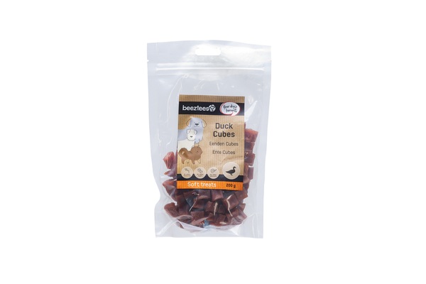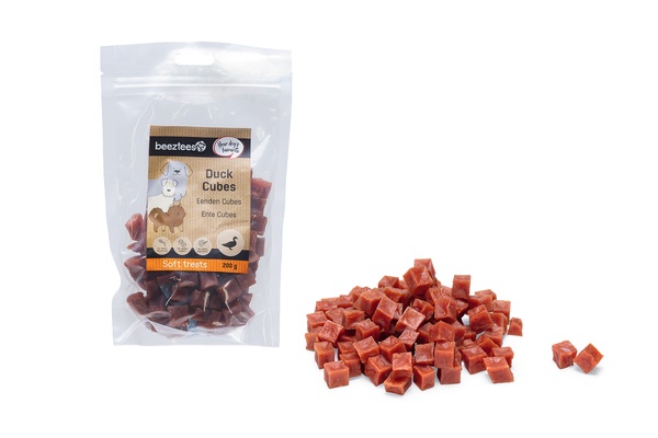 Premie a su perro fácilmente con estos cubos de pato Beeztees. Estos snacks con delicioso sabor a pato son pequeños, ideales para usar durante el entrenamiento. Su tamaño compacto permite llevarlos fácilmente en el bolsillo del abrigo o en la bolsa de premios. Los cubos de pato no contienen colorantes ni saborizantes, ni azúcares añadidos. En resumen, a su perro le encantará este snack Beeztees. - Pato - Para usar como snack de recompensa - Estructura blanda - Sin saborizantes añadidos - Sin colorantes añadidos - Sin azúcares añadidos - Disponible en 2 paquetes. Contenido: - 200 gramos - 400 gramos
