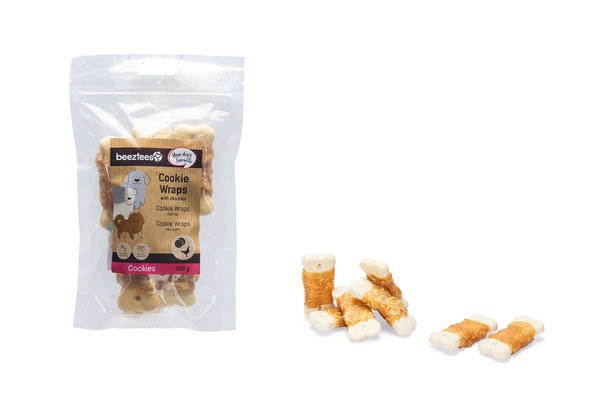 Las Galletas Wraps Beeztees son un delicioso snack para perros. ¡Estas galletas son deliciosas para tu perro porque están envueltas en pollo! Se han utilizado colorantes naturales para este snack. Además, no contienen sabores añadidos. Las Galletas Wraps están disponibles en tres tamaños diferentes, para que cualquier raza de perro pueda disfrutar de este delicioso premio. - Con pollo - Colorantes naturales - Sin sabores añadidos - Disponible en tres tamaños diferentes. Medidas: - Talla S - 200 o 400 gramos - Talla M - 200 o 400 gramos - Talla L - 200 gramos