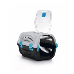 Transportín de plástico para transportar fácilmente a pequeñas mascotas, como un cachorro, un gato o un roedor | Garantiza el transporte de la mascota de forma segura | La parte superior se puede quitar usando las abrazaderas laterales | La puerta de plástico permite acariciar a la mascota durante el viaje | Disponible en 2 colores diferentes | Medidas: 51cm x 34,5cm x 33cm