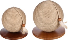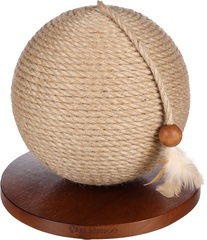 Material: madera de pino |Grosor placa base: 1,6 cm | Juguete rascador con cuerda para rascador de yute (6 mm) | Cuerda con pluma para una diversión sin límites | Con patas protectoras para evitar arañazos
