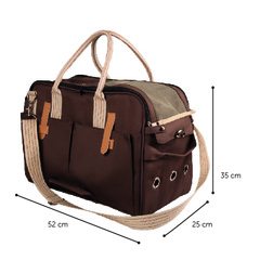 Lleva a tu fiel amigo de cuatro patas contigo a todas partes con esta práctica bolsa de transporte marrón. Con varios compartimentos para guardar cosas y una larga correa para llevarla sobre el hombro, esta bolsa es perfecta para cuando estás en movimiento.