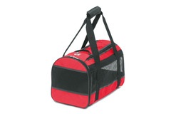 Bolsa de transporte para gatos y perros pequeños. Con identificación de animal y correa para el hombro | Se puede abrir tanto en la parte superior como en el lateral | Está cerrado con cremalleras | Inserciones de malla para una buena circulación de aire | Bolsillo lateral para accesorios y golosinas | Gancho de seguridad para sujetar el arnés . Estante robusto y extraíble | Cuidado fácil y lavable | En tres colores (negro, rojo, azul)