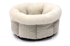 Cama de peluche para gatos con bordes altos | Bonito lugar para una agradable siesta | Tejido aterciopelado con alcochado | Interior con felpa suave | Fabricado 100% poliéster | Lavable a 30ºC | Con equipo antideslizante | Beige | Medidas (LxAnxAl): 45cm x 45cm x 23cm