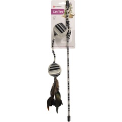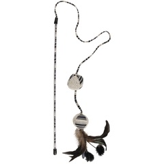 Material: caña de madera con juguete de textil |Estimula el instinto de caza de tu gato | Con pelotitas, hierba gatera, cintas y plumas con goma elástica para que disfruten jugando