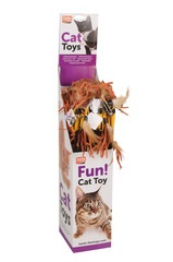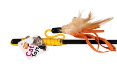 El juguete ideal para la interacción entre el dueño y elgato . Con plumas y pelusa de cuero al final del cordón amarillo. Animar a jugar y cazar a la presa. En una caja de presentación