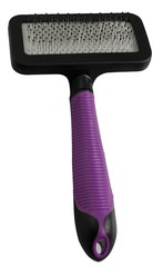 Con pasadores de metal con cabezas de plástico. Elimina suavemente la capa inferior y el cabello suelto. Hace que el pelaje brille | Mango antideslizante de forma ergonómica | Limpiar y desinfectar regularmente | Disponible en 2 tamaños.