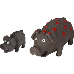 CERDO DE LÁTEX CON PUNTOS FLAMINGO (10cm) - GRIS