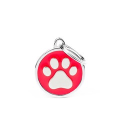 Chapa esmaltada a mano con opción de grabado en la cara posterior. Incluye la anilla para colgar en el collar. | Equivalencia códigos:MF859458=CH17MREDPAW