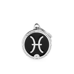 Chapa esmaltada a mano con opción de grabado en la cara posterior. Incluye la anilla para colgar en el collar. | Equivalencia códigos: MF858574=MFPISCES