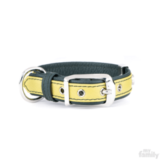 Collar fabricado en cuero italiano con acabados en bronce blanco. Cuenta con una anilla en "D" para facilitar el anclaje a la correa y un porta placas para colgar la chapa identificativa. | Equivalencia con códigos MyFamily: (S) 1210 (SM) 1211 (M) 1212 (ML) 1213 (L) 1214 (XL) 1215 (XXL) 1216 (XXXL) 1217.