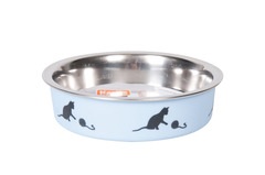 Comedero de acero inoxidable | Decorado con un lindo motivo de gato | Apto para lavavajillas | Suelo antideslizante | Retire el anillo de goma antes de lavar en el lavavajillas | Disponible en rosa o azul claro | Medidas: ø: 10cm | Capacidad: 160ml