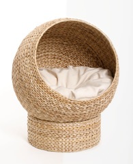 Cueva para dormir hecha de hojas de plátano secas y tejidas a mano. Mirada natural y atemporal Incl. Almohada, lavable a 30 °, beige | Dimensiones aprox: 53 x 53 x 61 cm.