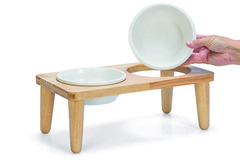 Con cuencos de cerámica aptos para lavavajillas | Para comida y agua | Medidas: - Vajilla: 40x21x15 cm - Cuencos: 16,5x16,5x6,5 cm - 550 ml