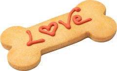 Love Bone: una galleta aromática con forma de hueso para decirle a tu amigo/a fiel "Te quiero". Elaborada con masa quebrada y cubierta con un glaseado de yogur. Hecho a mano, decorado a mano y empaquetado a mano. Presentado en una caja de cartón para colgar.