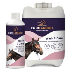 Refresca y desodoriza la piel. Wash & Care es un potente champú natural. De forma suave, se libera la piel de la caspa, se limpian los poros de la piel y se hace brillar el pelaje. Este champú también protege el valor de pH natural de la piel del caballo. Previene el desarrollo de olores desagradables e incluso proporciona un aroma agradable. También tiene un efecto refrescante y beneficioso sobre la piel.