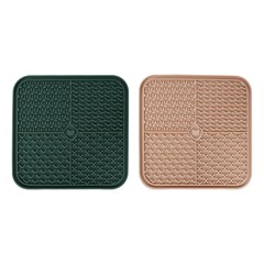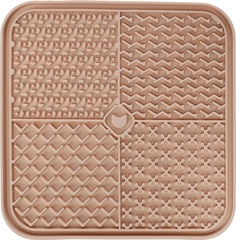 Material: silicona |Con ventosas para fijarla al suelo |También apto para cachorros y gatitos |Puede utilizarse con comida húmeda y pasta en combinación con snacks |Apto para lavavajillas y se puede meter en el congelador hasta menos 20°C |Un tapete para lamer evita que el perro engulla la comida |Dimesiones: A:20cm B:20cm C:1,3cm