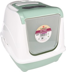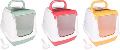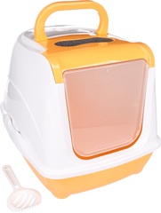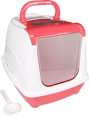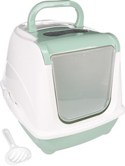 Material: plástico | Fácil de mover gracias a su asa | Incluye un filtro de carbono reemplazable que reduce las molestias por olores | Tapa extraíble con puerta abatible | Con recogedor de arena para gatos | Fabricado en Europa | Medidas: A:38CM B:50CM C:37CM