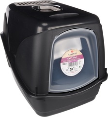 ¡Este arenero para gatos negro Gabby es perfecto para tu gato! Con asa, filtro de carbón y tapa desmontable. Fácil de limpiar y fabricado en Europa.