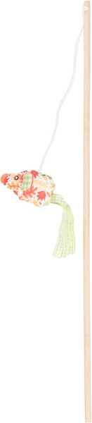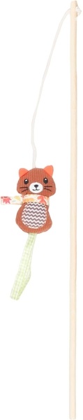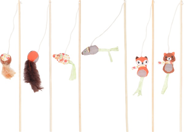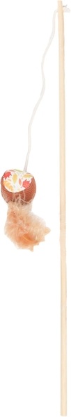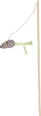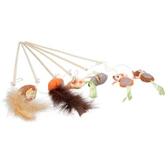 Material: caña de madera con juguete de felpa|Con sonido crepitante, hierba gatera, lazos y plumas en una cuerda para una mayor diversión|Estimula el instinto de caza de tu gato