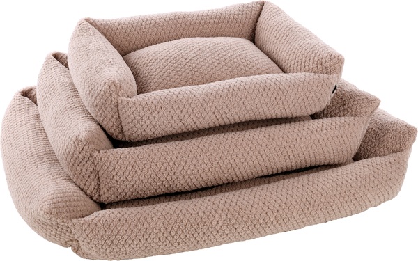 Esta cesta rectangular color taupe es perfecta para tu amigo peludo. Está hecha de suave peluche con un relleno de fibra de poliéster para mayor comodidad. La funda desmontable con cremallera facilita la limpieza. Y con la base antideslizante, la cesta se mantiene en su lugar.