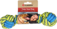 FLAMINGO HUESO ANUDADO DE JUGUETE PARA PERRO - TOFLA - AZUL/AMARILLO
