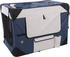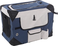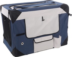 ¡Lleva a tu fiel compañero peludo a todas partes con estilo con la Transportkooi Geronimo Azul! Ligera, plegable y con prácticos bolsillos de almacenamiento. Fácil de limpiar y súper cómoda para tu amigo peludo.
