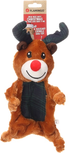 ¡Haz brillar a tu amigo peludo esta Navidad con el reno Jeffro! Hecho de peluche suave con un squeaker y crujidos para una diversión de juego máxima. ¡Tu perro va a adorar absolutamente a este alegre reno!