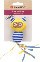 Material: textil | Con hierba gatera y cintas para que disfruten jugando | Diseño único y original, desarrollado por Flamingo | Medidas: 4.8cm L x 2.8cm An x 8.3cm Al