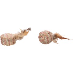 Dale el doble de diversión a tu gato con este disco y pelota de tela. El sonido traqueteante y las plumas juguetonas lo hacen irresistible. Perfecto para horas de travesuras y saltos aventureros.