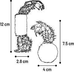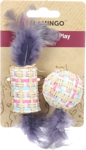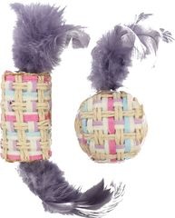 Dale a tu gato el doble de diversión con este rodillo y pelota morados. Hechos de tela y equipados con un sonido de traqueteo y plumas juguetonas. ¡Perfectos para travesuras interminables y sesiones de juego aventureras!