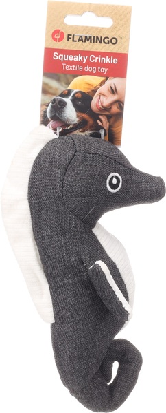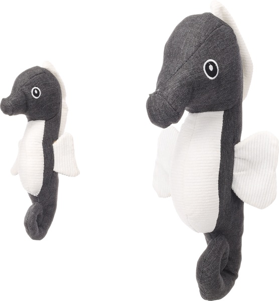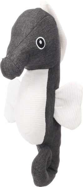 Este adorable caballito de mar gris es el compañero de juego perfecto para tu amiguito peludo! Hecho de tela y terminado con pana para mayor suavidad. Con squeaker y sonido crujiente para horas de diversión!