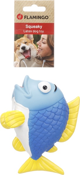 Deja que tu perro disfrute de interminables momentos de juego con este alegre pez azul Anais. Hecho de látex y equipado con un chirriador para ese sonido irresistible. Diseñado por Flamingo, así que sabes que es de calidad. ¡Perfecto para los peludos juguetones!