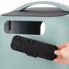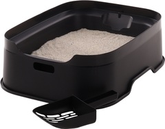 Material: 98% de plástico reciclado | Tapa desmontable con asa | Con rebajes para levantarlo más fácilmente | La puerta magnética y el filtro de carbono reducen las molestias por olores | Incluye un recogedor de arena para gatos | Fácil de limpiar gracias a los rincones redondeados | Fabricado en Europa | Medidas: M | A:38,5cm B:51cm C:44,5cm