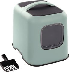 ¡Trudy Groen es la bandeja de arena ideal para tu gato! Hecha de plástico reciclado y con características prácticas como una tapa desmontable, muescas para levantar y una puerta magnética con filtro de carbón para reducir los olores. Incluye una pala para la arena y es fácil de limpiar gracias a sus esquinas redondeadas. Fabricada en Europa.