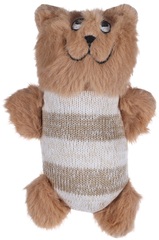 Juguete divertido y atractivo para gatos de todas las edades. Este juguete está diseñado con la forma de un oso de de color marrón con rayas. Es agradable al tacto, y a los gatos les encanta mordero y jugar con él. Perfecto para fomentar el instinto natural de juego y caza de los gatos, y puede ayudar a reducir el aburrimiento y la ansiedad en los gatos. Además, es ideal para juegos interactivos de lanzamiento y recuperación, lo que puede fomentar la actividad física y el ejercicio en los gatos. Hecho de materiales duraderos y resistentes, lo que lo hace ideal para el uso diario y es fácil de limpiar y mantener.