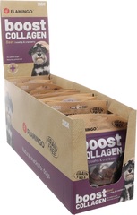 Sin cereales | No contiene azúcares añadidos | Contiene colágeno que contribuye a una piel y articulaciones más saludables | El colágeno también proporciona a tu perro un pelaje saludable y brillante | El glucosamina y condroitina añadidos potencian la eficacia del colágeno | Con conservantes naturales | Fabricado en Europa | Peso: 60gr
