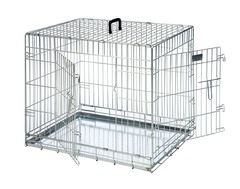 La jaula de metal de color plateado en varios tamaños ofrece a los perros un refugio seguro. Ya sea como una caja de transporte cuando viaja o como un lugar tranquilo en casa, el perro siempre puede sentirse protegido y seguro en la caja. La caja de celosía le permite al perro una visión clara de lo que sucede a su alrededor. Por lo tanto, no se siente aislado, ni se le impide al amigo de cuatro patas hacer contacto visual con el cuidador. Y viceversa, el guardián también siempre tiene un ojo en su animal. Gracias a una bandeja de suelo de metal extraíble, la jaula de fácil cuidado se puede limpiar fácilmente. Un asa facilita el transporte. Excepto por el tamaño más pequeño, las jaulas están equipadas con dos puertas. La posible entrada y salida lateral y frontal aumenta la flexibilidad y las opciones de posicionamiento.