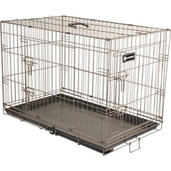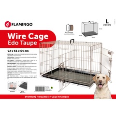 Material: metal con recubrimiento de pintura en polvo de epoxi | 2 puertas con 2 cerraduras deslizantes cada una; XS tiene 1 puerta con cerradura | Plegable y fácil de mover gracias a sus asa extraíble de plástico | Fácil de limpiar gracias a cajón extensible de plástico | Grosor de alambre: XS, XL y XXL: 3,5 mm / S, M y L: 4 mm | Grosor de alambre vertical: XS: 2 mm / S - XXL: 2,5 mm | Grosor de alambre de bastidor: XS - L: 4 mm / XL - XXL: 4,5 mm | Jaula para perro EBO | Gris pardo | L:56x92x64CM