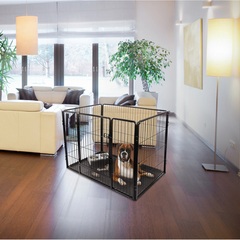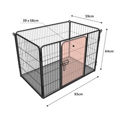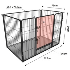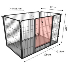 Material: metal con grosor de alambre horizontal y vertical: 3,5 / 3 mm | También apto para cachorros | Con recubrimiento de pintura en polvo de epoxi | Puerta con una cerradura deslizante | Fácil de montar con pasadores de sujeción para mayor estabilidad | Patas protectoras para evitar rayar el suelo | Fácil de limpiar con cajón de plástico
