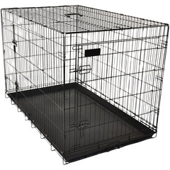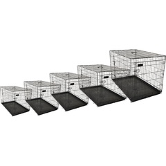 Material: metal con revestimiento electrostático | 2 puertas con 2 cerraduras deslizantes cada una | Plegable y fácil de mover gracias a sus asa extraíble de plástico | Fácil de limpiar gracias a cajón extensible de plástico | Grosor de alambre y de bastidor: 3,5 mm | Grosor de alambre vertical: S - L: 2 mm / XL - XXL: 2,5 mm | Jaula para perro MEZO | XL 70x109x77CM