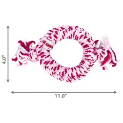 KONG Rope Puppy Ring brinda una satisfactoria experiencia de masticación con un material de hilo ultra suave y duradero, específico para cachorros, que está tejido en forma de cuerda. Esta fabricación robusta está hecha para brindar largas horas de juego y apoyar las necesidades instintivas de masticación. Un tejido de cuerda denso y sólido garantiza una diversión duradera que refuerza la masticación adecuada. Ideal para juegos de tirones. Fabricada con un material de cuerda flexible pero duradero, KONG Puppy Rope Ring está hecha para satisfacer las necesidades de dentición de un cachorro a la vez que premia el comportamiento adecuado de masticación